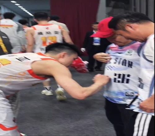 庞峥麟没有因失利沮丧离场,而是径直走到广东主帅杜锋面前,鞠了一躬。