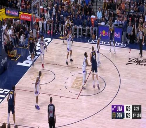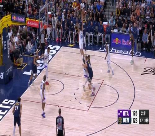 最后的3分钟时间,掘金打了爵士一波14-3,直接把比赛给收了,约基奇在这波进攻小高潮里拿了2分3助攻,且每一波进攻都与他直接相关。