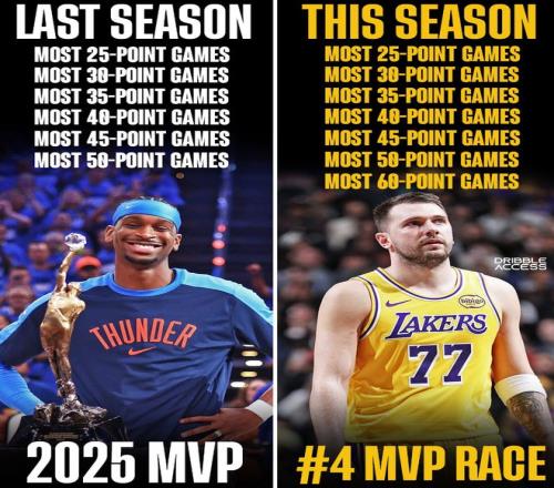 东契奇更是包揽25-26赛季从25分-60分的所有榜单,去年包揽这份榜单的人是SGA他最终拿到MVP,而本赛季的东契奇包揽这份榜单MVP仅仅排名第四。
