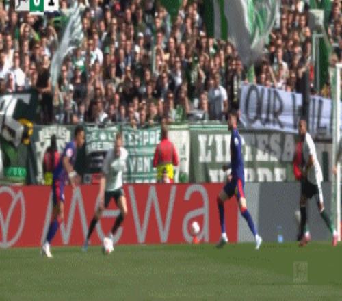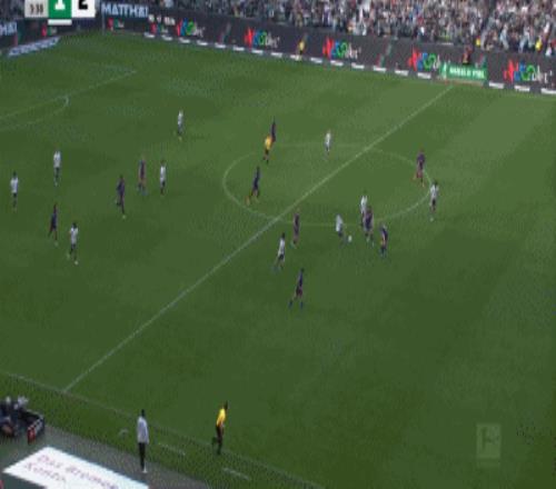 第90+4分钟,扳回一城,穆萨禁区内破门,不莱梅1-2莱比锡