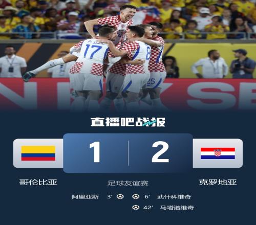 体育播报3月27日宣 北京时间3月27日7:30,足球友谊赛,哥伦比亚在美国奥兰多体育场迎战克罗地亚。上半场琼·阿里亚斯破门,武什科维奇进球帮助克罗地亚扳平,尾声阶段马塔诺维奇帮助克罗地亚反超比分,哥伦比亚暂1-2克罗地亚;下半场佩塔·穆萨中柱,最终哥伦比亚1-2克罗地亚。