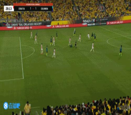 下半场伤停补时6分钟,全场比赛结束,最终哥伦比亚1-2克罗地亚。