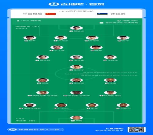 体育播报03月27日宣 北京时间今天下午14:00,FIFA系列赛第一轮,中国男足vs库拉索,赛前两队首发阵容公布。本场比赛在悉尼澳大利亚体育场进行。【国足首发阵型4231,杨希、徐彬上演国足首秀,刘浩帆、朱辰杰搭档后卫,张玉宁突前】