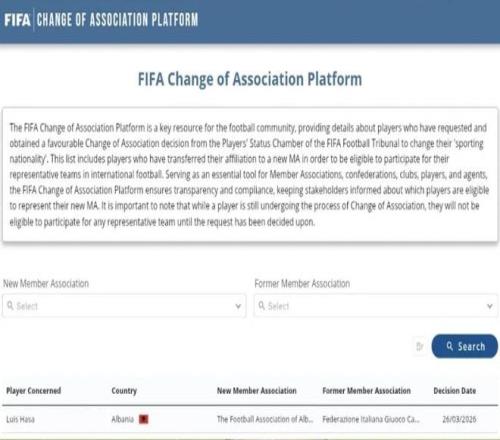 官方消息,那不勒斯中场球员路易斯-哈萨(目前租借效力于卡拉雷塞)已决定退出意大利足协会籍,转而代表阿尔巴尼亚参加国际比赛。