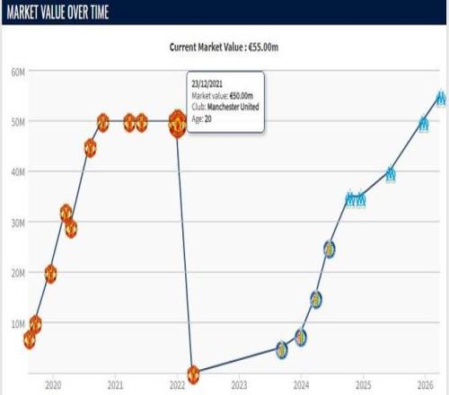 随后在加盟赫塔费和马赛之后,凭借出色的表现,他的身价逐渐上升,在去年12月,他的身价上涨到5000万欧,追平了此前在曼联的巅峰身价,如今,他的身价再次上涨了500万欧元。